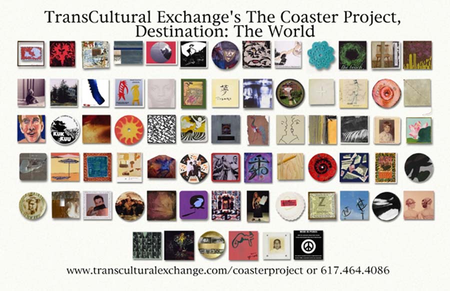 “coasters” at bars, cafes and restaurants. Response to TransCultural Exchange’s The Coaster Project, Destination: The World exceeded all expectations. Along with requests for workshops, a K-12 education program (where children around the globe exchanged paper tiles – or drawings – and letters), additional venues, interviews, articles and talks by the artists; the Northeast Chapter of the International Art Critics Association voted The Coaster Project, Destination: The World ‘The Best Show in an Alternative Space outside of New York.’